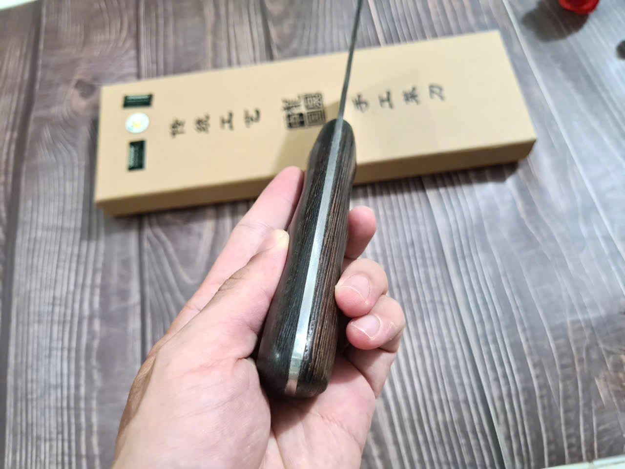 - Chức năng: chuyên chặt thái cá, chặt gà, lọ - Kích thước: Lưỡi: 26cm, cán: 12,5cm, rộng: 6,5cm, dầy: 4ly, trọng lượng: 480g - Cán : Gỗ mun , Khâu và chốt đồng đỏ
