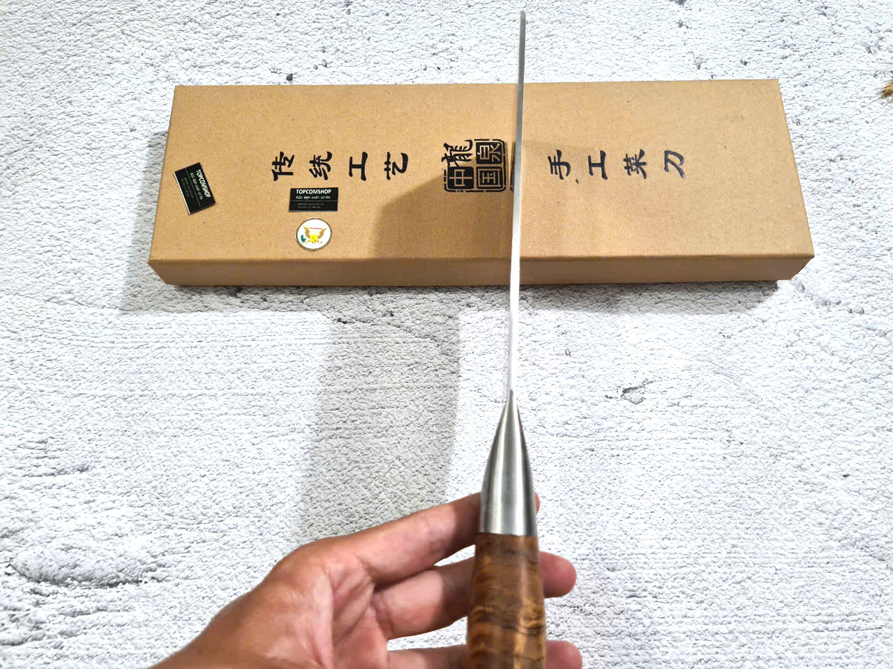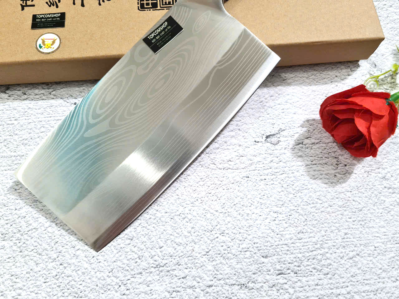 - Chức năng: chuyên chặt thái cá, chặt gà, lọ - Kích thước: Lưỡi: 26cm, cán: 12,5cm, rộng: 6,5cm, dầy: 4ly, trọng lượng: 480g - Cán : Gỗ mun , Khâu và chốt đồng đỏ