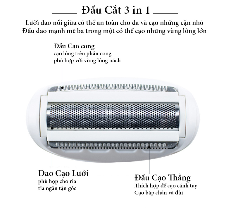 Máy làm sạch hoàn hảo cho những vùng nhạy cảm nhất của bạn như bikini, nách, đầu gối và mắt cá chân. Không có vết sẹo hoặc kích ứng thường gây ra khi cạo bằng dao cạo.
