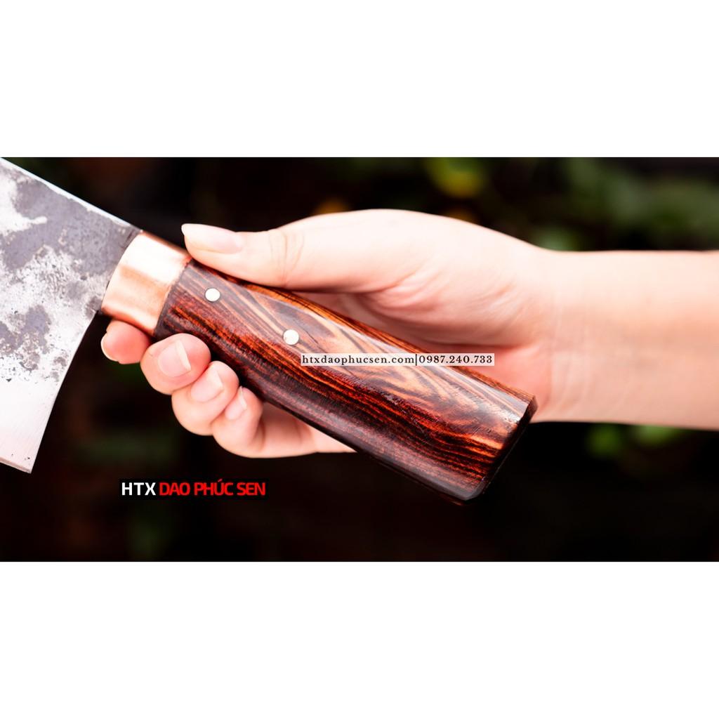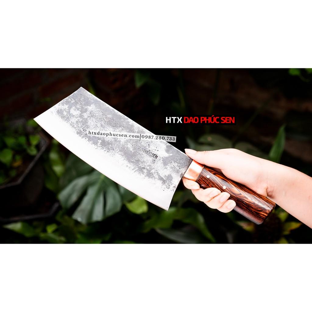 Dao Phúc Sen - Dao chặt xương 5ly - Chất liệu: 100% thép nhíp ô tô được lựa chọn và kiểm duyệt kỹ càng. - Chất liệu cán: gỗ cẩm chỉ núi - Kích thước: