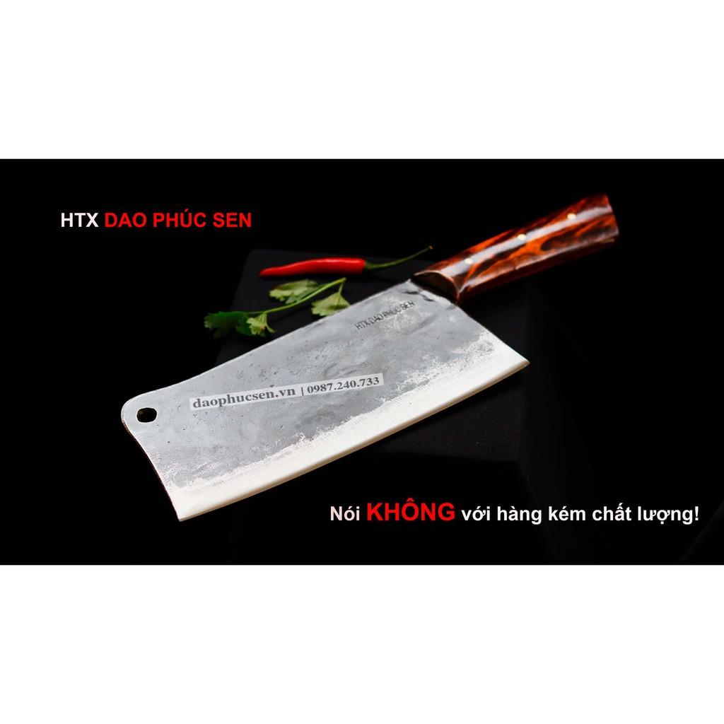Dao Phúc Sen - Dao Thái Nhỏ Mini (Vỏ Gỗ Cẩm Chỉ) - Chức năng: chuyên chặt thái cá, chặt gà, lọ - Kích thước: Lưỡi: 26cm, cán: 12,5cm, rộng: 6,5cm, dầy: 4ly, trọng lượng: