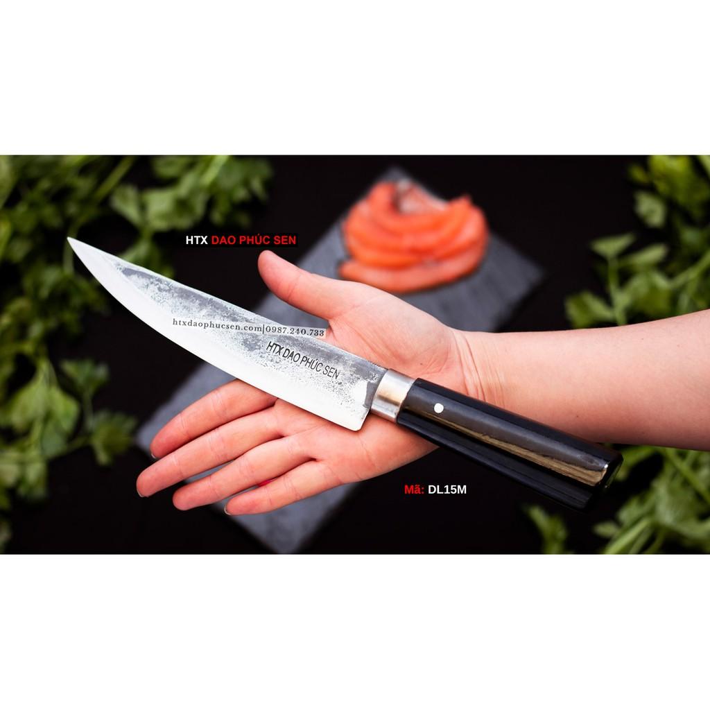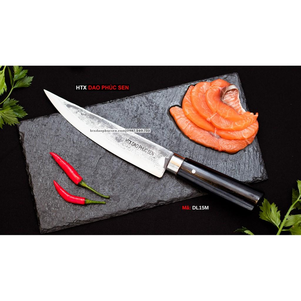 Dao Phúc Sen - Dao lọc 15 cán mun - DL15M - Kích thước: lưỡi: 18cm, cán: 12cm, rộng: 3.5cm, dầy: 1.5ly, trọng lượng: 200g - Chức năng: sử dụng chuyên thái lọc thịt ,cá,