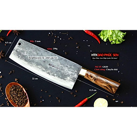 - Chức năng: thái thịt, rau củ quả - Kích thước: Lưỡi: 17cm, cán: 12cm, rộng: 5cm, dầy: 1ly, trọng lượng: 200g - Cán : Gỗ cẩm chỉ, Chốt, Khâu ĐỒNG ĐỎ , keo liên