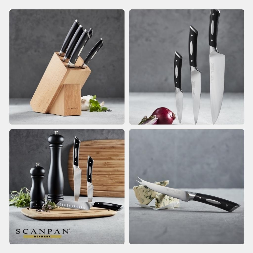 Đặc điểm nổi bật của các dao Scanpan là chất lượng, độ bền và thiết kế sắc nét trong từng chi tiết, là sự lựa chọn tuyệt với tất cả các đầu bếp chuyên nghiệp cho dù cắt, thái, băm, chặt....