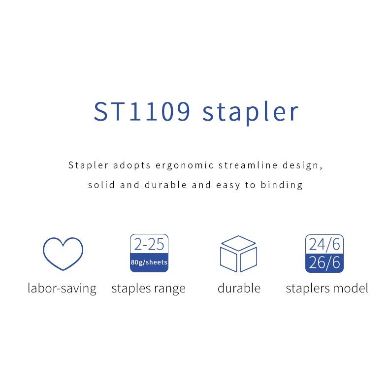 Vật chất::kim loại Kích thước:Bình thường Kích thước ghim:24/6, 24 / 6T, 26/6 Công suất ghim:80 chiếc Dung lượng tấm:25 Độ sâu cổ họng:80mm Kích thước:12 * 3 * 3.5 cm op kim bấm tiện