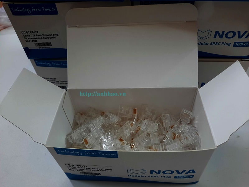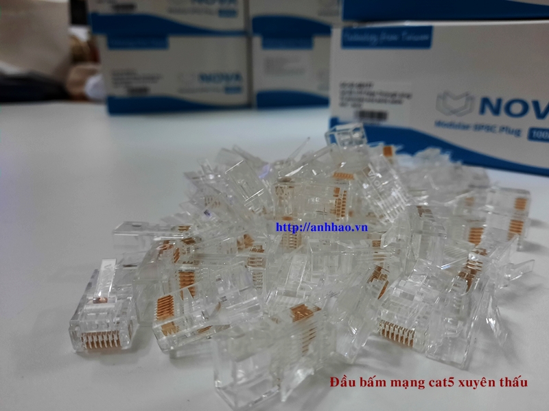 ✨Đầu bấm mạng xuyên thấu Cat5/ cat6 Nova, chân cắm mạ vàng 50u, bấm không bị méo, lệch chân, Made in Taiwan