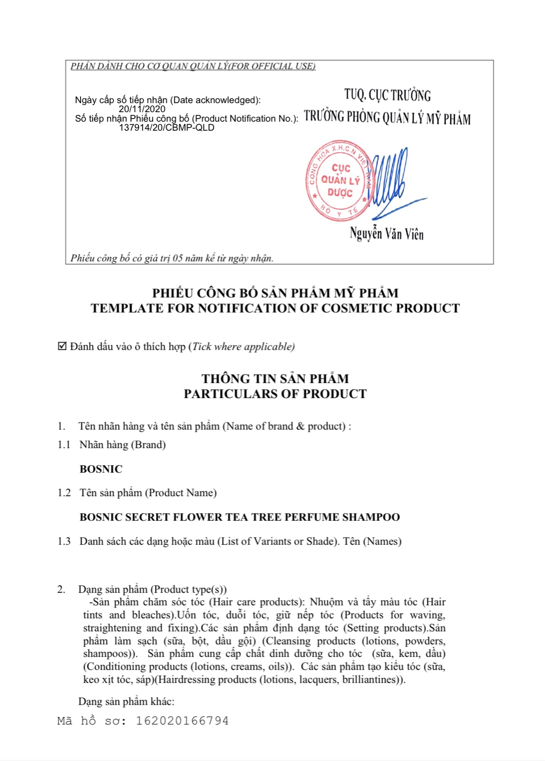 Mua tại TiktokDầu Gội Hương Hoa Phục Hồi Hư Tổn - Secret Flower Tea Tree 500ml - Chính Hãng Hàn Quốc Dầu Gội Hương Hoa Phục Hồi Hư Tổn Secret Flower Tea Tree 500ml là sản phẩm dầu gội chuyên dành cho tóc bị hư tổn, nhằm giúp tóc phục hồi từ trong ra ngoài. Với thành phần thiên nhiên từ hoa trà tươi và mùi thơm quyến rũ vốn có, Dầu Gội Hương Hoa Phục Hồi Hư Tổn luôn giữ vị trí cực kỳ hot trong các sản phẩm dầu gội của Bosnic. Đặc biệt, Dầu Gội Hương Hoa có khả năng cân bằng độ pH cần thiết cho tóc, phù hợp với da đầu của tất cả khách hàng, dịu nhẹ và không gây kích ứng hoặc ngứa đồng thời giữ ẩm cho tóc và bảo vệ tóc tránh các tác nhân ngoài môi trường như nắng, gió bụi và tác động nhiệt. Mang lại cho bạn mái tóc mềm mượt, óng ả và luôn "thơm như hoa". Giới thiệu về thương hiệu: