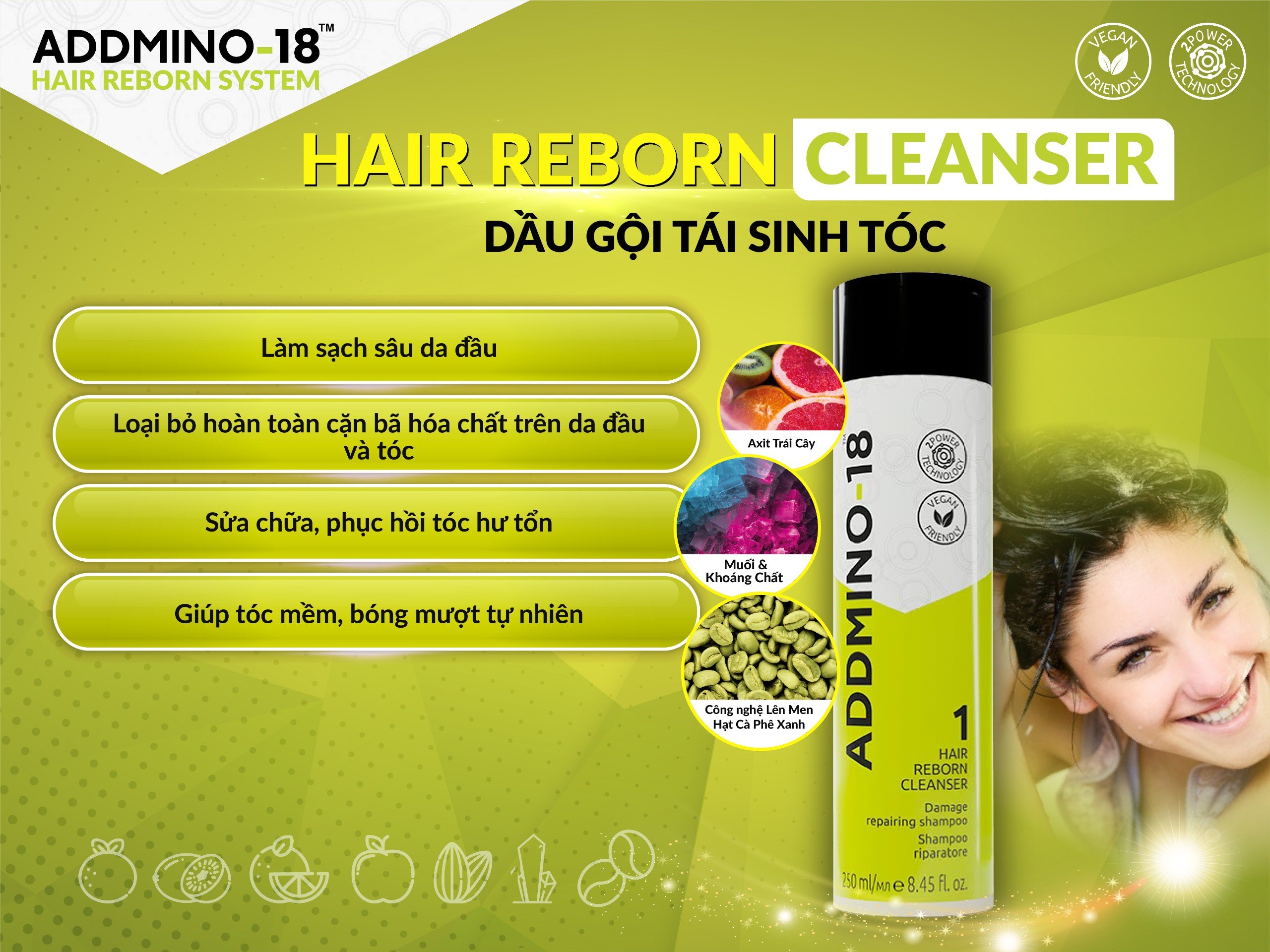 Mua tại TiktokDầu Gội Tái Sinh Tóc (Addmino -18 1 Hair Reborn Cleanser)
