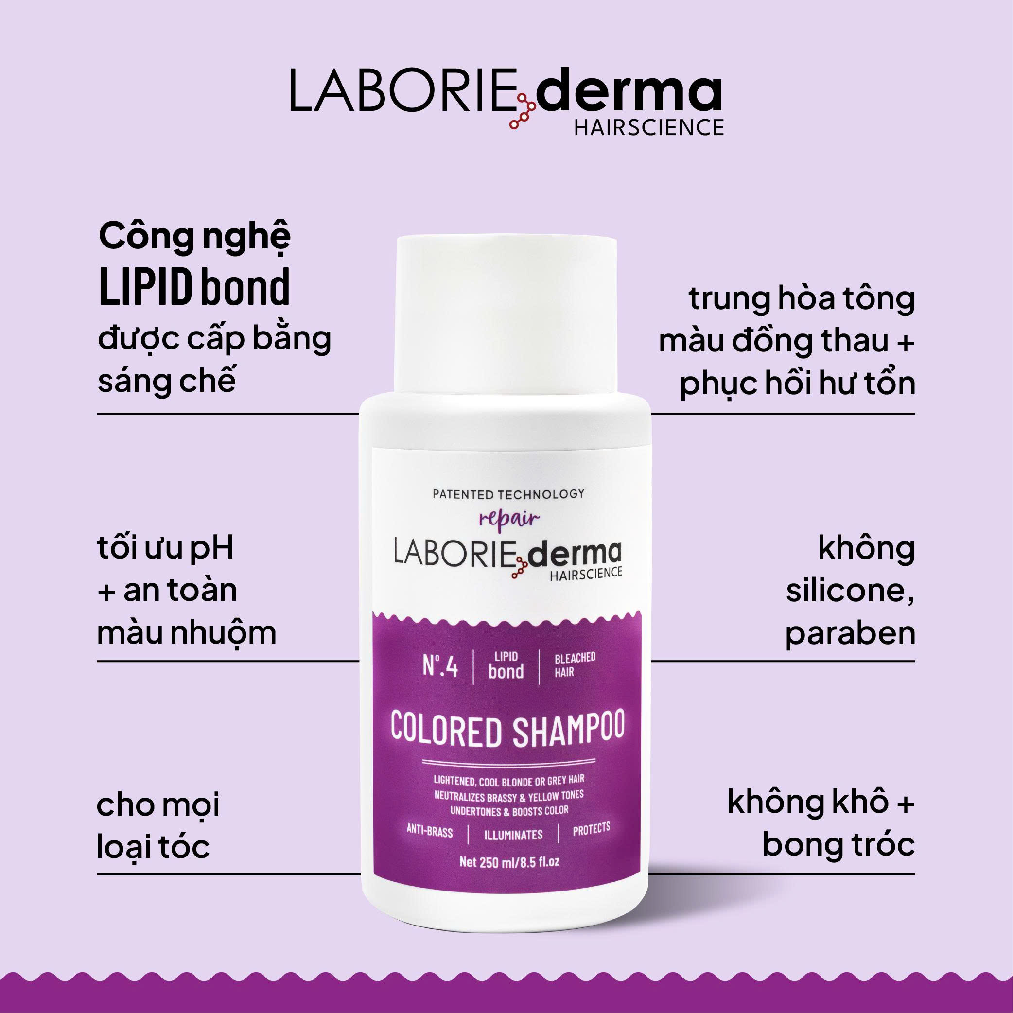 ✨Dầu gội tím giúp làm sáng và đều màu tóc LABORIE derma Colored Shampoo - 250ml