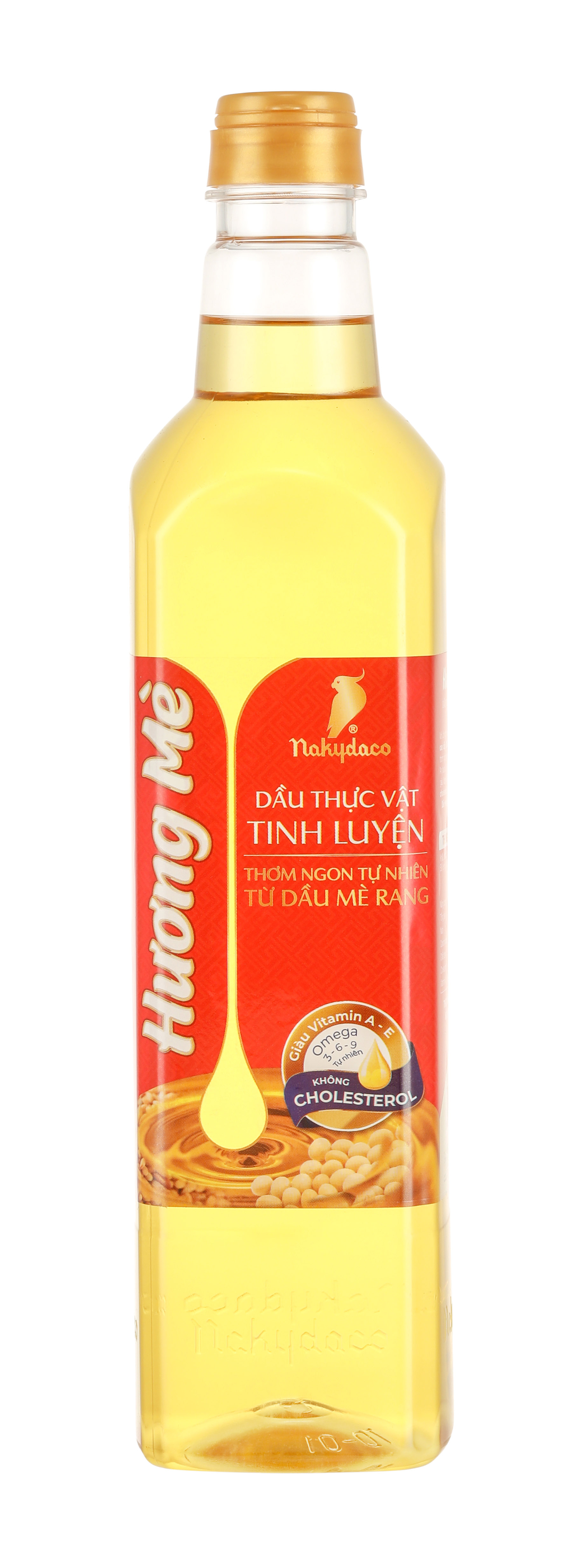 HƯƠNG MÈ Dầu ăn Hương mè - Hương vị đặc biệt từ dầu mè thơm nguyên chất 100% Là sản phẩm cao cấp của công ty, không chứa cholesterol - Thành phần: Dầu Palm olein,