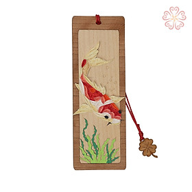 ✨Dấu Trang Giấy Xoắn Khắc Gỗ Veneer Hình Cá Chép Dành Cho Người Yêu Sách Size 5.2 x13.5