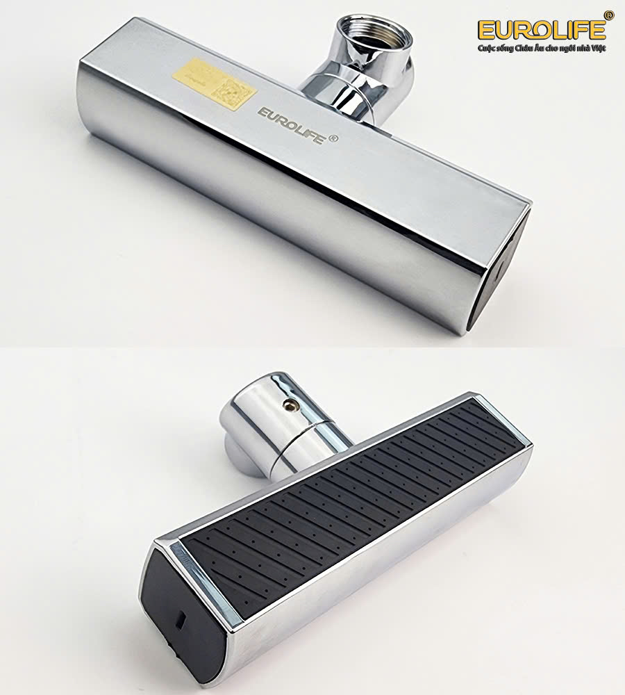 Sản phẩm được làm từ nhựa ABS an toàn và thân thiện với sức khỏe người sử dụng. Mặt ngoài được mạ Chrome sáng bóng, sang trọng. Logo Eurolife cùng tem truy xuất nguồn gốc được dán trên thân vòi.