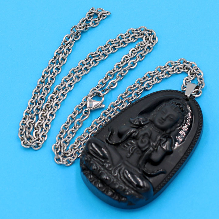 ✨Dây chuyền phật Như Lai Đại Nhật - thạch anh đen 5cm DITTEN5 - dây inox - tuổi Mùi, Thân