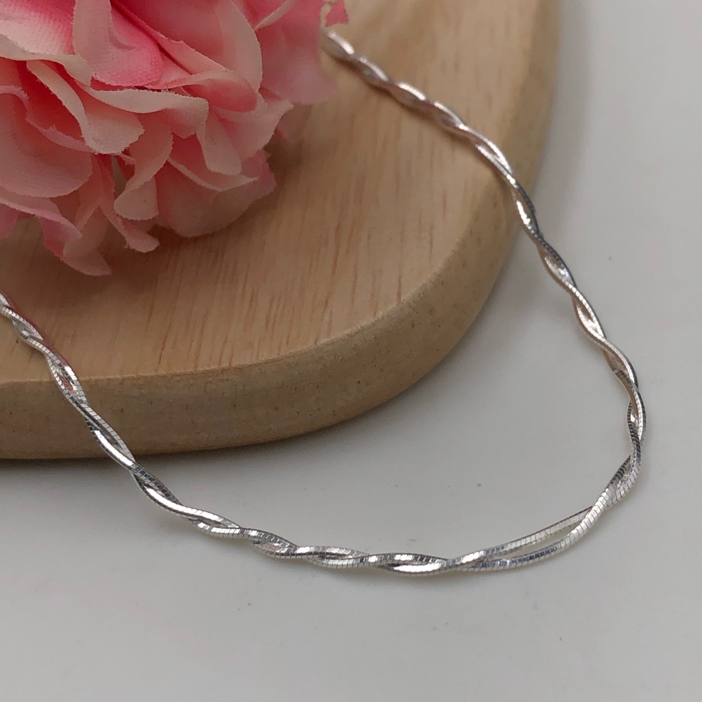 Dây Chuyền Vòng Cổ Nữ Bạc 925 Dây Mì Xoắn Kép Bạc Hiểu Minh DCN258