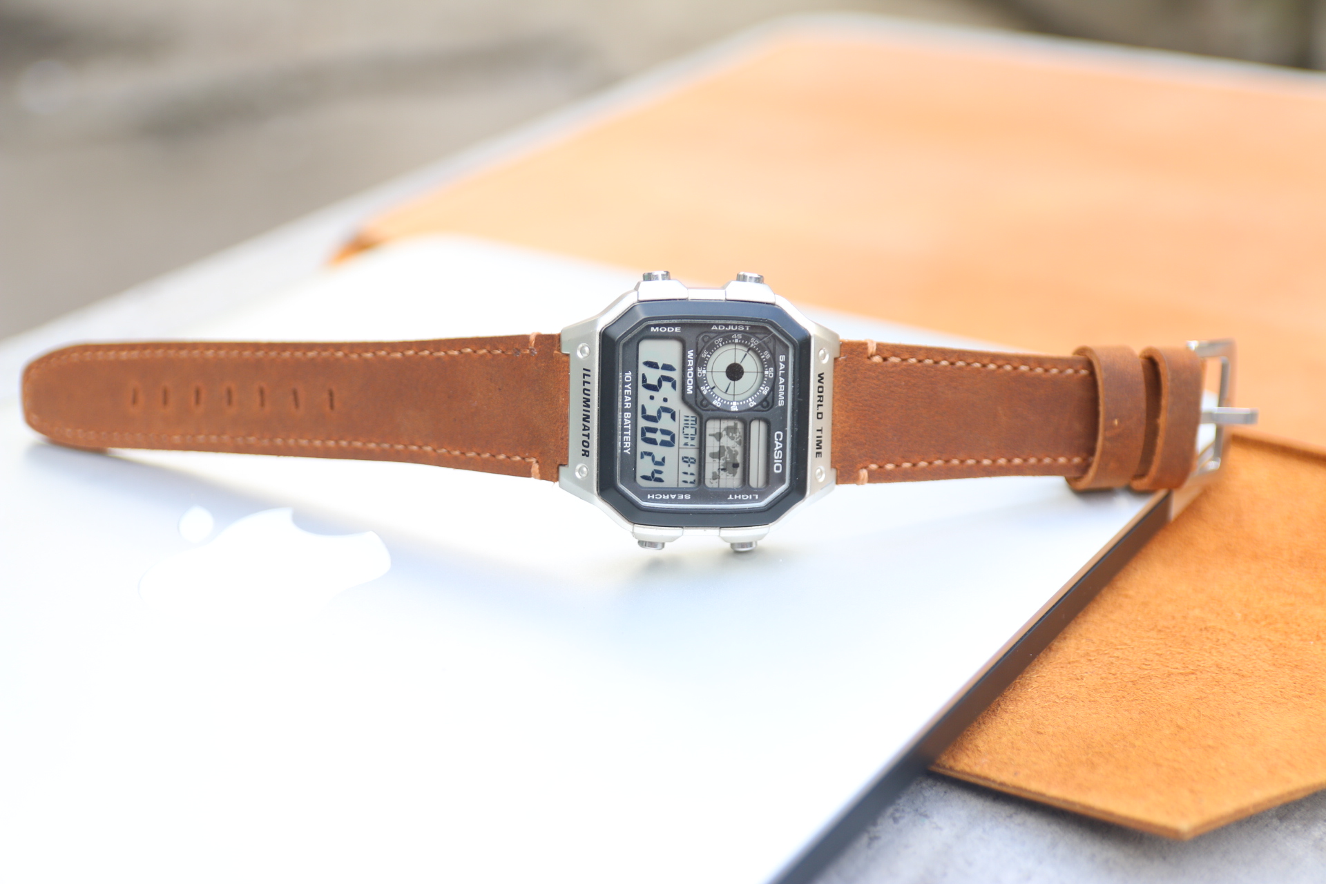 Dây đồng hồ Casio WORLD TIME AE-1200 da cá sấu xịn đó nha anh em #madebyhungly #bespoke