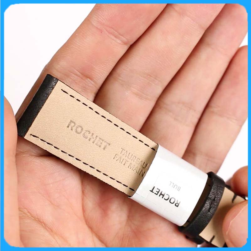 • Dây được chế tác từ da bê dây thiết kế vân trơn độn giữa mỏng từ 3.5mm phần đầu gắn dây đến dày 2.8mm phần đuôi dây. Dây được thiết kế vuốt nhỏ nên phần gắn khóa sẽ nhỏ hơn 2mm so với chiều ngang phần gài dây. Dây đồng hồ chống nước cơ bản chịu được nước bắn tuy nhiên không khuyến khích nhúng chìm trong nước.