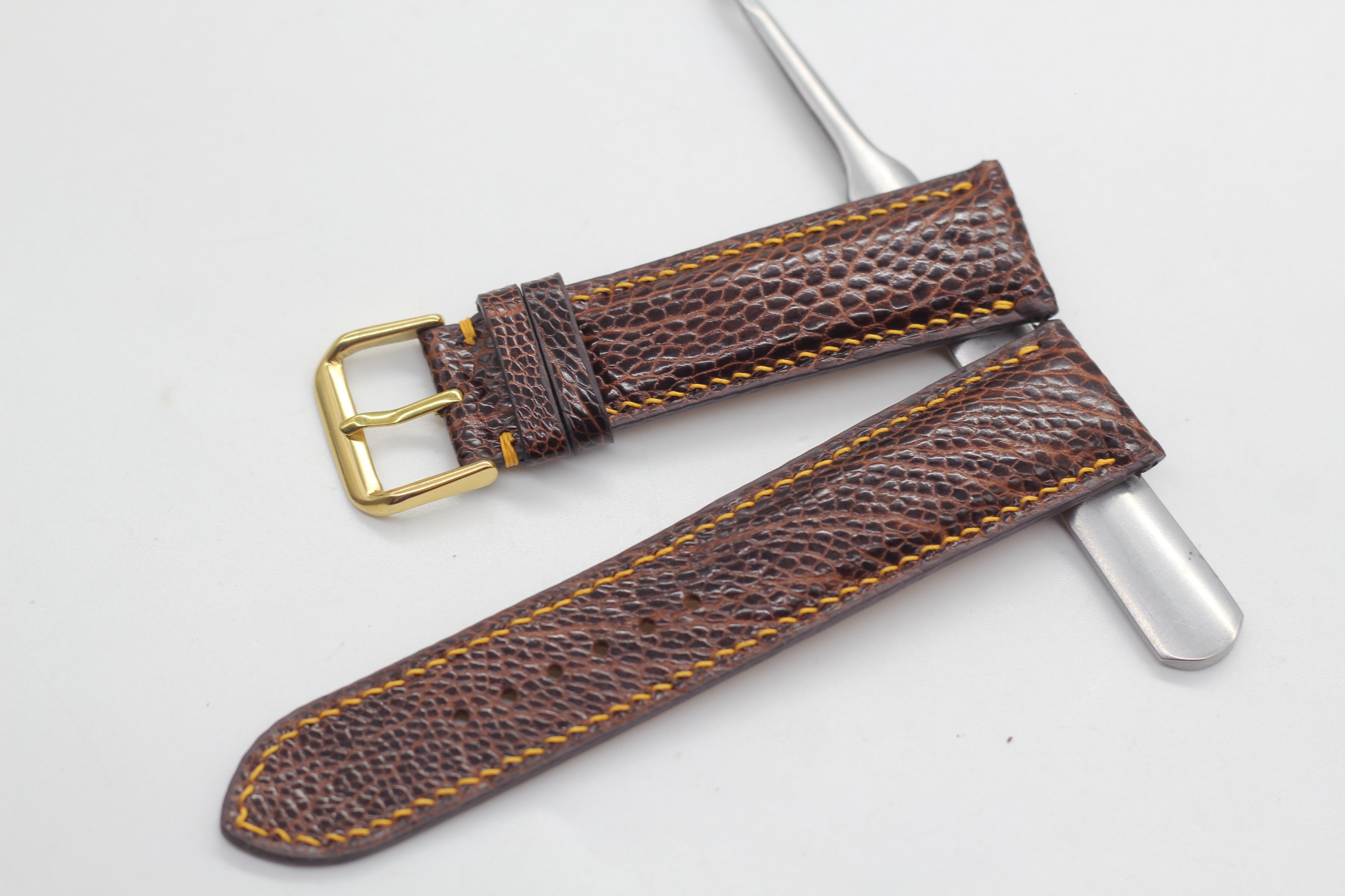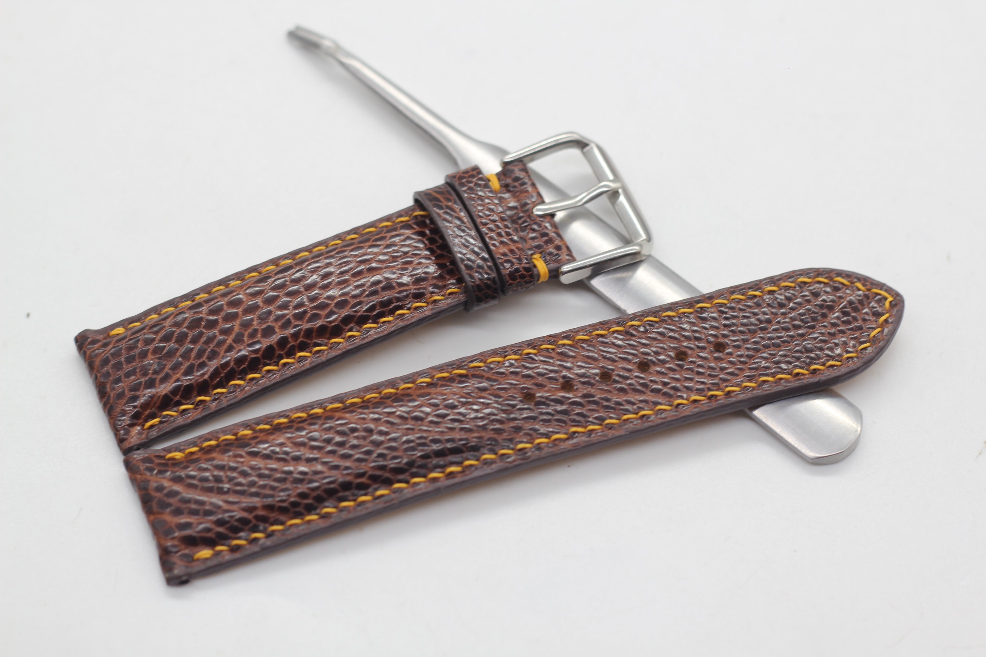 ✨Dây Đồng Hồ Da Đà Điểu Thật Cao Cấp Songhan Leather HANDMADE Màu Nâu Khóa Kim , Bảo Hành 6 Tháng WSOT-01