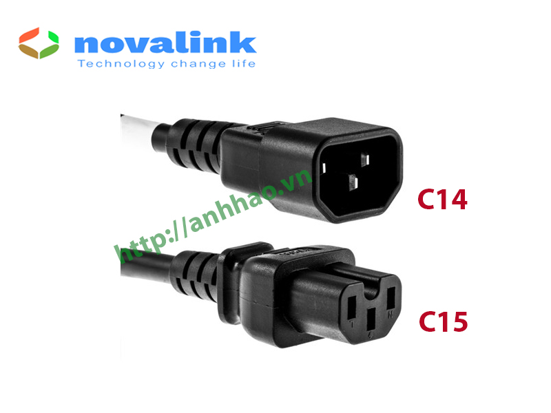 ✨Dây nguồn C14 C15 dài 2M Novalink NV-51005A (13A, 16AWG) – Dùng cho UPS, PDU, Server, PDU, máy tính - Hàng chính hãng