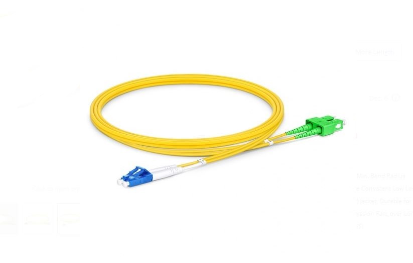 LC APC to SC APC Duplex OS2 Single Mode PVC (OFNR) 2.0mm Fiber Optic Patch Cable 3m sample