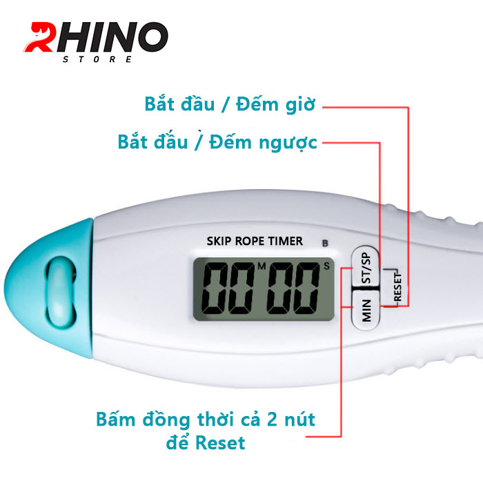 Dây nhảy thể thao lõi thép cao cấp Rhino J601 tự động đếm số, đếm giờ, tích hợp đo calo, quãng đường, độ dài dây tùy chỉnh - Dùng cho Muay | Boxing | Kickboxing - Hàng chính hãng