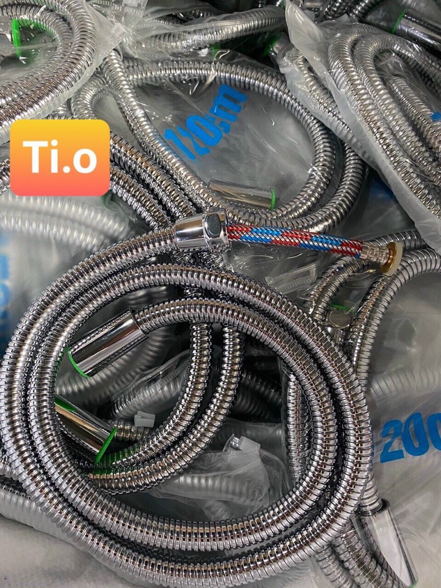 • Dây dẫn nước (ống dẫn nước) là một trong những phụ kiện không thể thiếu khi quý khách lắp các loại vòi tắm hoa sen hoặc vòi xịt toilet. Vòi Tắm hoa sen Dây dẫn nước dùng cho vòi tắm hoa sen có tác dụng dẫn nước từ các van vòi nước (van củ sen, gật gù nóng, lạnh,) đến vòi hoa sen.  - Dây sen dây dẫn nước vòi sen gồm các thành phần như sau: Đầu nối:Vòi Tắm hoa sen  có 2 đầu, 1 đầu nối với van vòi nước (đầu ngắn), 1 đầu nối với vòi phun nước (vòi tắm hoa sen, vòi xịt toliet) đây cũng chính là đầu dùng để gác lên giá đỡ vòi (cục gác vòi) và để đảm bảo kín nước khi kết nối thì ở 2 đầu nối này luôn có miếng đệm / gioăng cao su cao xu (ron cao su). Quý khách mua dây nhớ chú ý đừng để rớt mất gioăng cao su nha. Ống dẫn nước: nằm bên trong dây, thường là ống tròn bằng cao su dẻo, có khả năng chịu áp lực nước, chịu nhiệt độ. Lớp vỏ bảo vệ đường ống: lớp này có tác dụng bảo vệ đường ống dẫn nước bên trong khỏi bị cong và tăng tính linh hoạt cho dây khi người dùng thu lại / kéo giản / di chuyển dây. Ngoài ra lớp vỏ này còn giúp tăng tính thẩm mỹ cho dây dẫn Loại dây dẫn nước vòi hoa sen có lớp vỏ bao bọc bằng kim loại (thường gọi là dây inox). có ống dẫn nước (lõi bên trong) bằng nhựa, ở một số loại có lớp ống vải bao bên ngoài để tăng thêm độ chắc chắn và độ chịu áp lực nước của dây. Bên ngoài cùng là lớp vỏ dạng ống hoặc dạng lò xo bằng kim loại: thường là inox hoặc kim loại mạ inox /crôm có thể thu lại / kéo giãn được, quý khách có thể uống cong / cuộn tròn dây vòi mà không làm cho đường ống dẫn nước bên trong móp méo hay tắt nghẽn. Yếu tố đánh giá dây dẫn nước vòi sen có tốt hay không phụ thuộc vào: “Vật liệu và thiết kế của dây vòi”.Loại tốt sẽ ít hoặc không bị rỉ sét khi dùng lâu và nó có khả năng chịu được áp lực nước lớn hoặc chịu nước có nhiệt độ cao (nước nóng). Dây càng tốt đương nhiên giá thành sẽ càng cao. Lựa chọn dây nào cho phù hợp sẽ phụ thuộc vào nhu cầu sử dụng của bạn.
