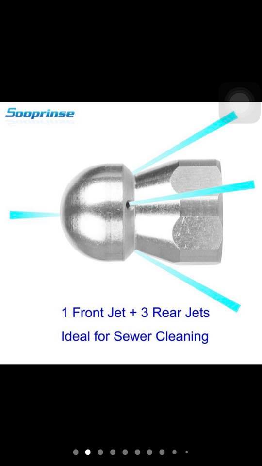 - Đầu phun inox 3 lỗ đẩy phản lực, 1 lỗ phun phá phía trước