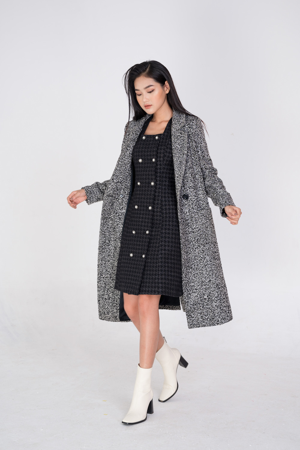Tháng Chín sắp qua, tiết trời lành lạnh với những cơn gió heo may. Các chị em còn chần chừ gì nữa mà không sắm ngay một chiếc đầm dạ tweed giữ ấm vừa phải