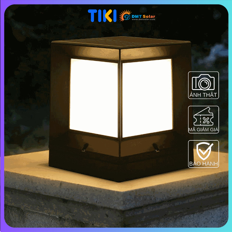 Quý khách hàng cần hỗ trợ ngay trong quá trình nhận hàng và sử dụng, vui lòng liên hệ theo thông tin trên hoá đơn mua hàng kèm theo để được hỗ trợ. Đừng vội đánh giá 1* tội nghiệp shop ạ. Đèn trụ cổng vuông năng lượng mặt trời TC03 được thiết kế đơn giản nhưng đầy tinh tế và hiện đại. Đèn là một hình khối vuông vức và ánh đèn có thể tòa đều ra 4 hướng hòa hợp với mọi không gian.Đèn sẽ tự động sạc vào ban ngày và tự động phát sáng vào ban đêm. Với điều kiện tiếp nhận ánh sáng mặt trời tốt thì chỉ cần từ 4-6 giờ là đèn TC03 sẽ hoàn toàn đầy pin sáng liên tục từ 8-10 giờ. Lợi ích của Đèn trụ cổng vuông năng lượng mặt trời DMT-TC03 so với các loại đèn truyền thống là chúng ta không cần phải đi dây điện. Sau khi nhận hàng từ DMT Solar, các bạn chỉ cần lắp đặt vào vị trí cần ánh sáng. Và sau đó, đèn sẽ tự động hoàn toàn mà không cần thêm bất kì một thao tác nào trong quá trình sử dụng.