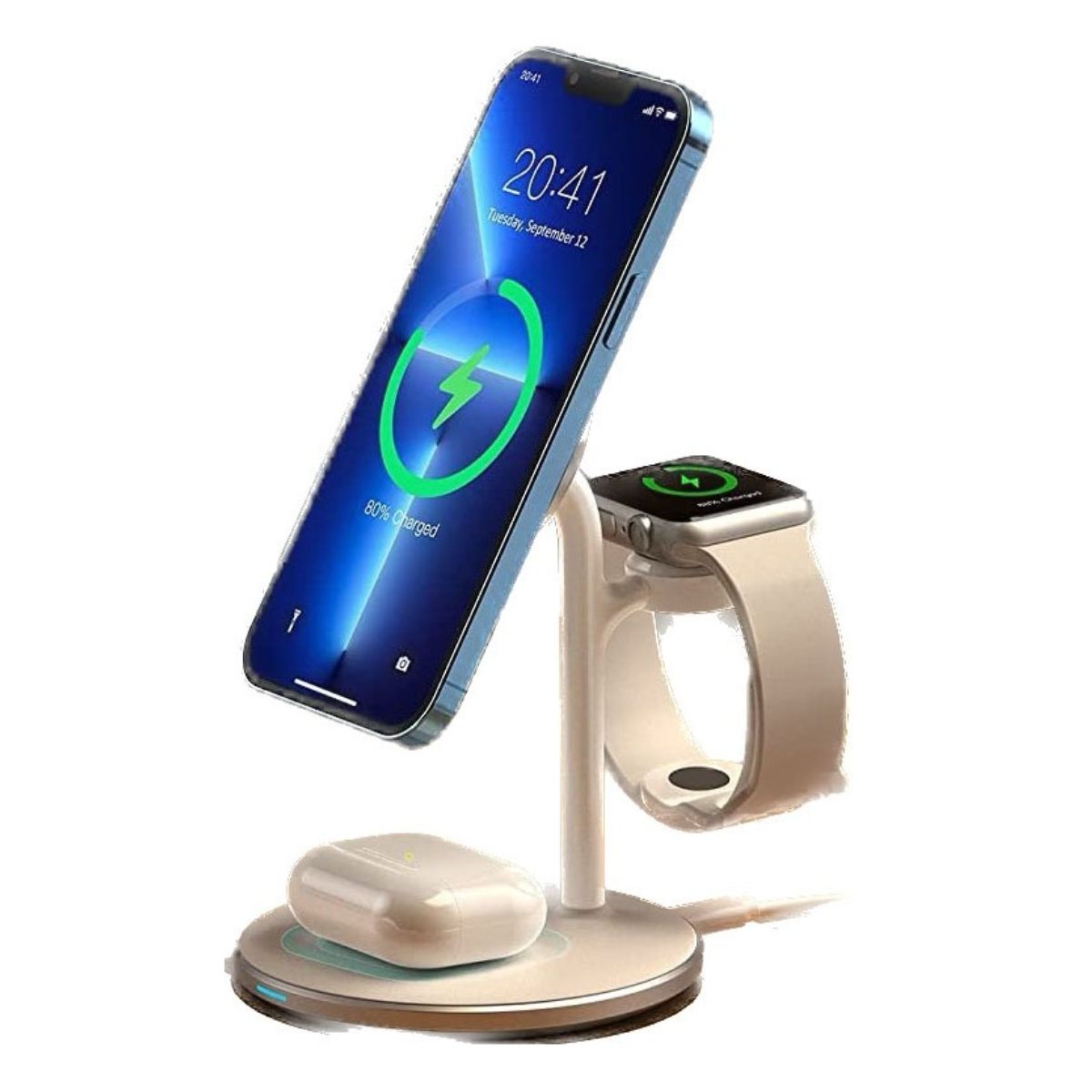 – Tương thích với các thiết bị sử dụng chuẩn sạc Mag-safe của Ap-ple và các sản phẩm hỗ trợ sạc không dây chuẩn Qi. Với khả năng có thể sạc 3 thiết bị cùng lúc như iP (Mag-safe), Air-Pods và Ap-ple Watch tiện lợi, giúp bạn tiết kiệm được thời gian sạc, tối ưu hoá diện tích bàn làm việc. Đây là một trong những chiếc đế đa năng nhất ở thời điểm hiện tại.