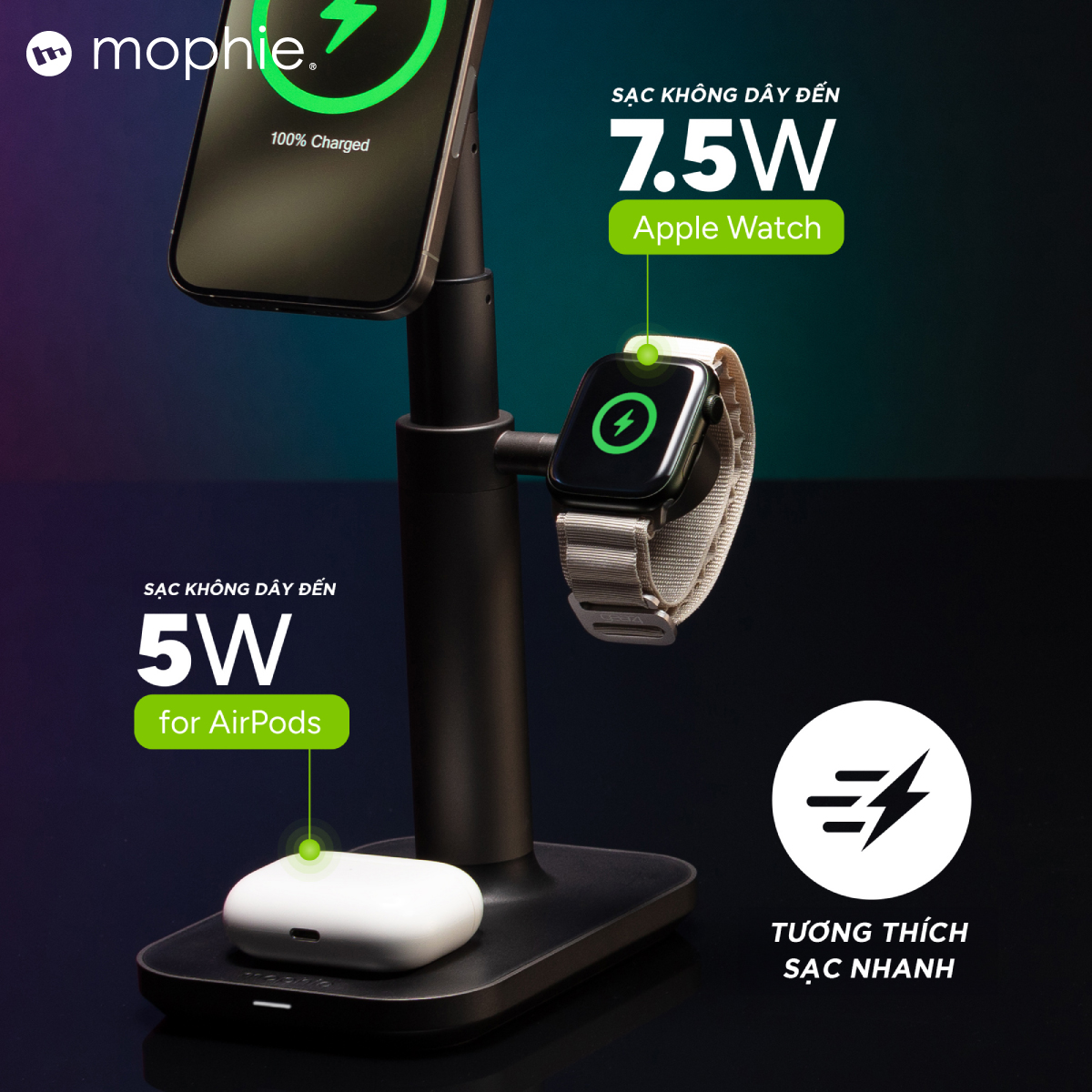 ✨Đế sạc đa năng Mophie 3in1 extendable, sạc nhanh 3 thiết bị, BH 2 năm 1 đổi 1 - Hàng chính hãng