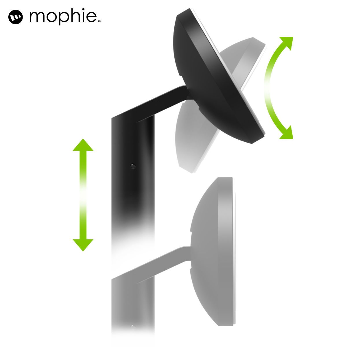 Đế sạc không dây Charge force desk mount Mophie       Nam châm từ tính Tích hợp nam châm từ tính giữ máy chắc chắn khi sử dụng. Thiết kế xoay chuyển tùy thích Có khóa