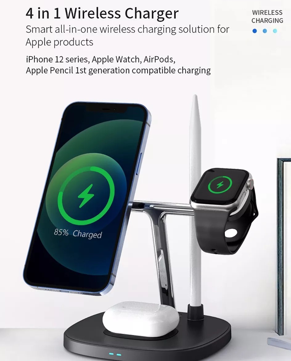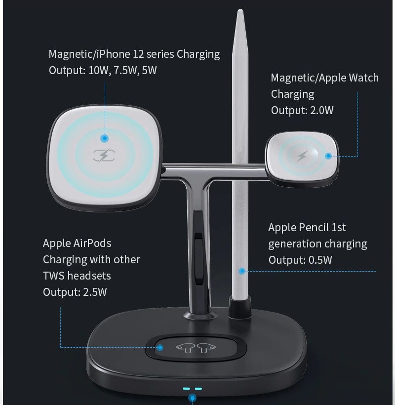 Bạn đang sở hữu nhiều sản phẩm của nhà Táo. Bạn có quá nhiều dây sạc cho từng loại sản phẩm khác nhau như iPhone, iWatch, tai nghe, Pencil và bạn luôn gặp phiền phức với chỗ dây sạc rối rắm trên bàn. Đừng lo, hãy để chúng tôi giới thiệu đến bạn sản phẩm đến từ nhà WIWU đó là Đế sạc nhanh không dây 15W 4 in 1 hiệu WIWU Power Air Wireless Charger M8 Đây sẽ là sản phẩm hữu ích giúp bạn giải quyết được phiền não về dây, cáp sạc từ trước đến nay. Đế sạc nhanh không dây 15W 4 in 1 hiệu WIWU Power Air Wireless Charger M8 có kiểu dáng thiết kế tương tự đế sạc không dây Air Power của , cực kỳ mỏng, nhỏ gọn