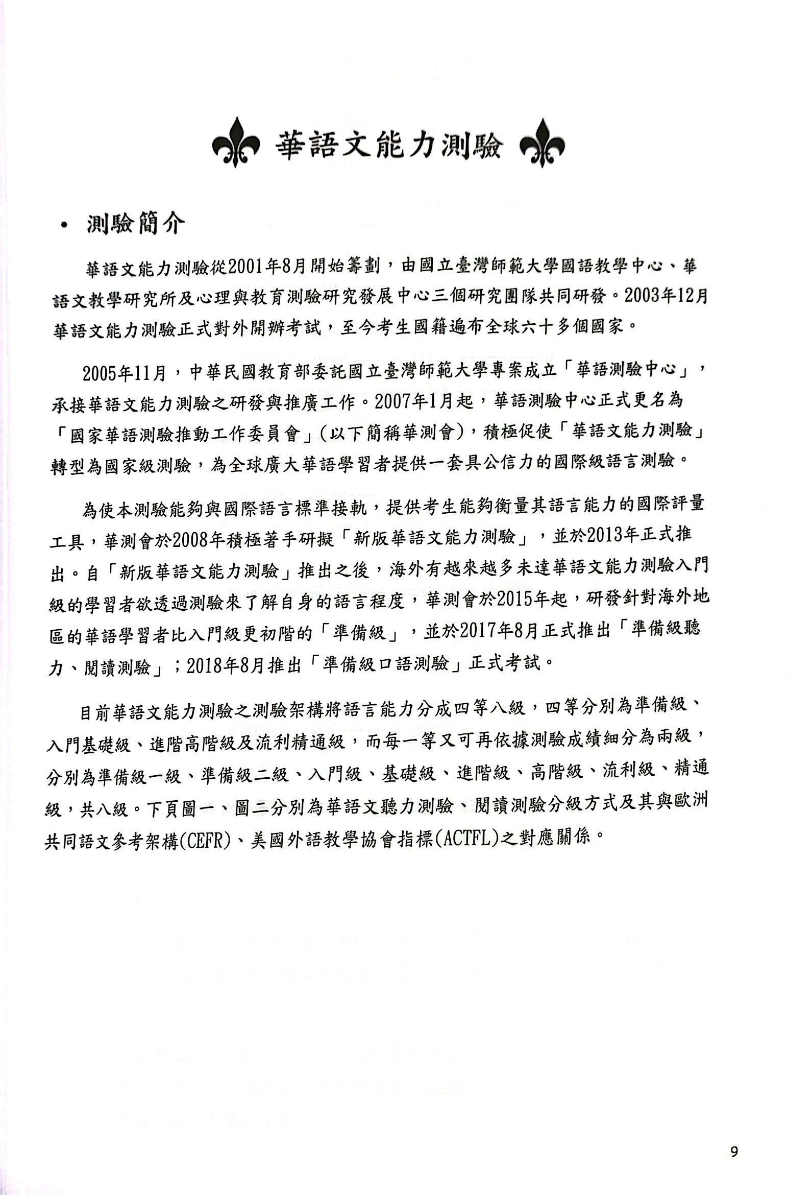 Để việc dạy học đạt hiệu quả thì ngoài đội ngũ giáo viên giỏi, cần phải có giáo trình và công cụ kiểm tra chất lượng cao. Tiếng Hoa bắt đầu được giảng dạy tại Đại học Sư phạm Đài Loan từ năm 45 dân quốc (năm 1956). Được sự ủy thác của Bộ Giáo dục, năm 2005, Đại học Sư Phạm Đài Loan đã thành lập Ủy ban Công tác thúc đẩy Kỳ thi Hoa ngữ, tích cực phát triển các bài kiểm tra năng lực tiếng Hoa nhằm thiết kế một kỳ thi năng lực Hoa ngữ có uy tín và được biết đến trên toàn cầu. Để có một công cụ đánh giá chính xác năng lực tiếng Hoa của người học và tương thích với Khung tham chiếu trình độ ngôn ngữ chung châu Âu, chúng tôi đã chú tâm nghiên cứu và triển khai Kỳ thi năng lực Hoa ngữ theo ba nhóm A, B, C. Nội dung kiểm tra được biên soạn bằng cách tham khảo số tiết học và sự phát triển năng lực Hoa ngữ của người học, đề cập đến nhiều khía cảnh như ăn, mặc, ở, đi lại, học hành, giải trí. Tuy nhiên, những bài thi này được thiết kế chủ yếu dành riêng cho những người đã học tiếng Hoa trên sáu tháng và có lẽ hơi khó đối với những người mới học.