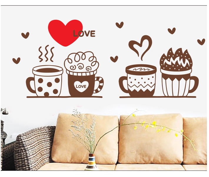 Decal dán tường coffee với hình ảnh độc đáo, cá tính. Decal sẽ mang lại một không gian đầy phong cách cho căn phòng của bạn ! Decal với họa tiết các tách cafe nhỏ gọn,