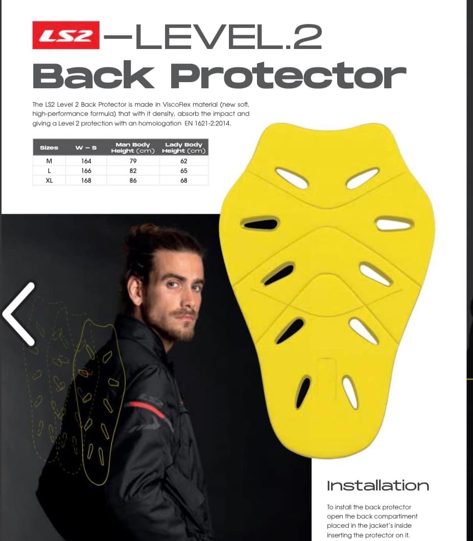 Giáp lưng LS2 Thông số kỹ thuật - Đạt tiêu chuẩn EN 1621-2:2014 Level 2 - Chất liệu: Viscoflex cho hiệu quả hấp thu xung động và bảo vệ tốt hơn - Trang bị 10