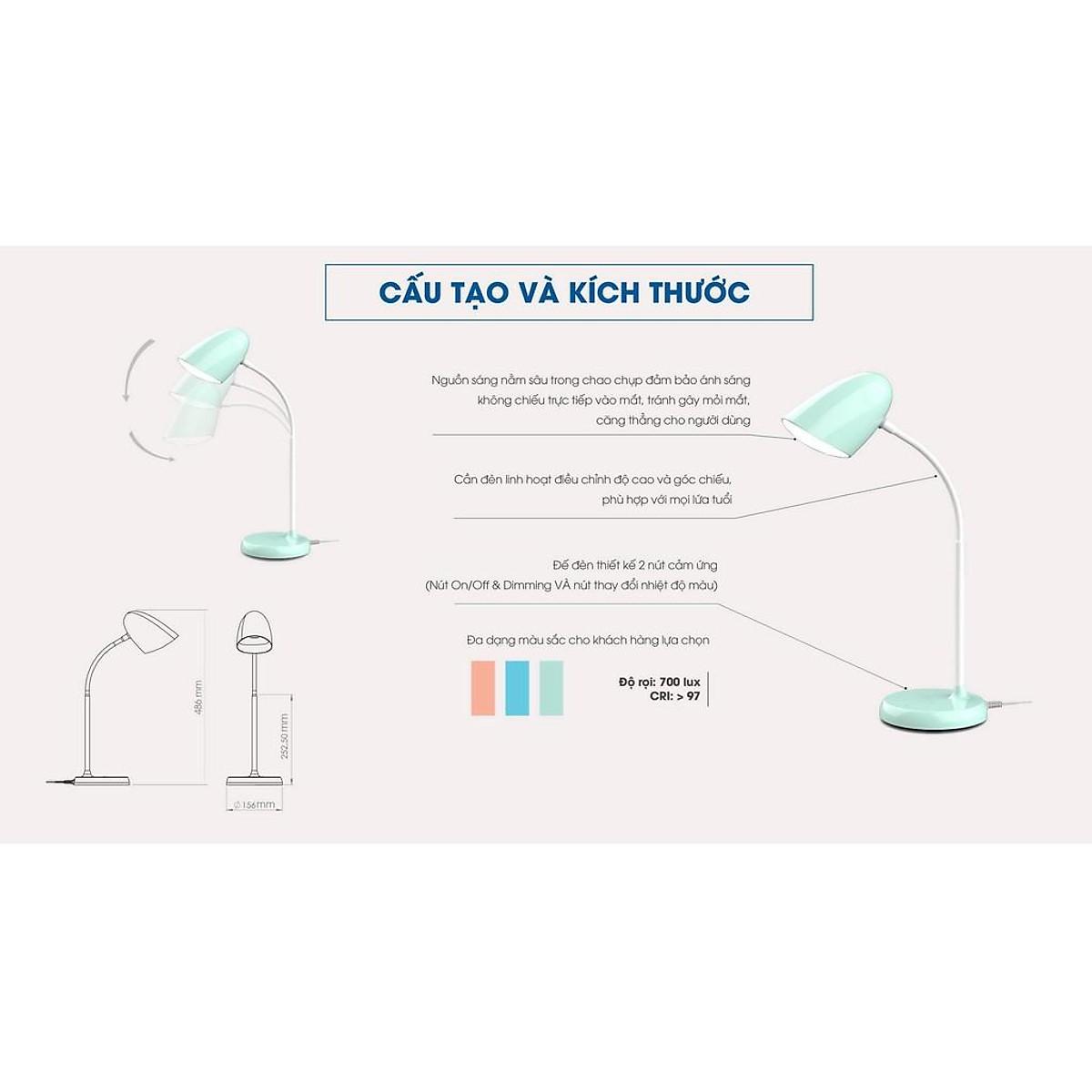 Công suất: 5W Điện áp: 220V/50Hz Màu ánh sáng: Trắng/Vàng Độ rọi: 700 lux - Đèn bàn LED Rạng Đông bảo vệ thị lực - Cần đèn linh hoạt điều chỉnh độ cao và góc