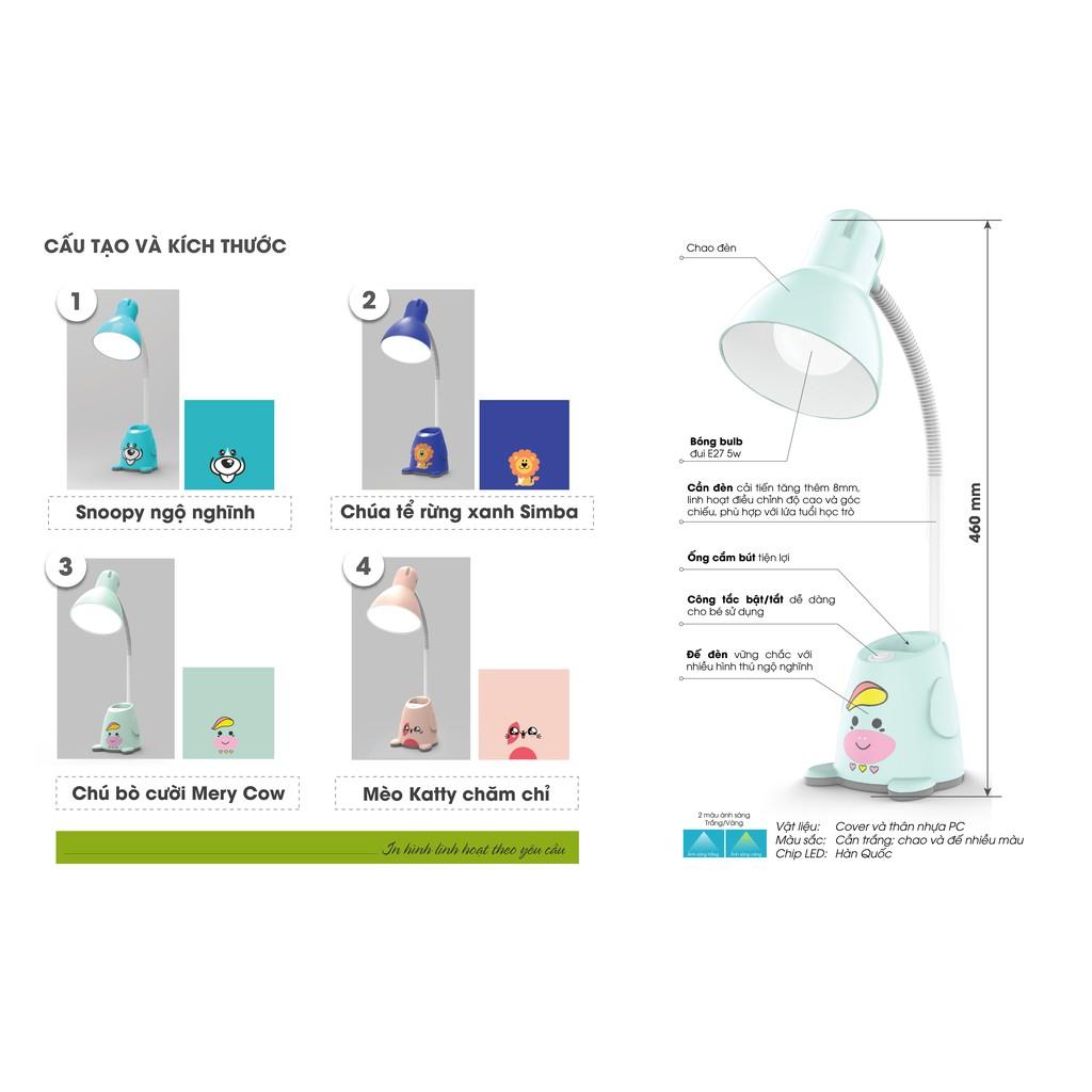 Công suất: 5W Điện áp: 220V/50Hz Màu ánh sáng: Trắng/Vàng Độ rọi: 700 lux - Đèn bàn LED Rạng Đông bảo vệ thị lực - Cần đèn linh hoạt điều chỉnh độ cao và góc
