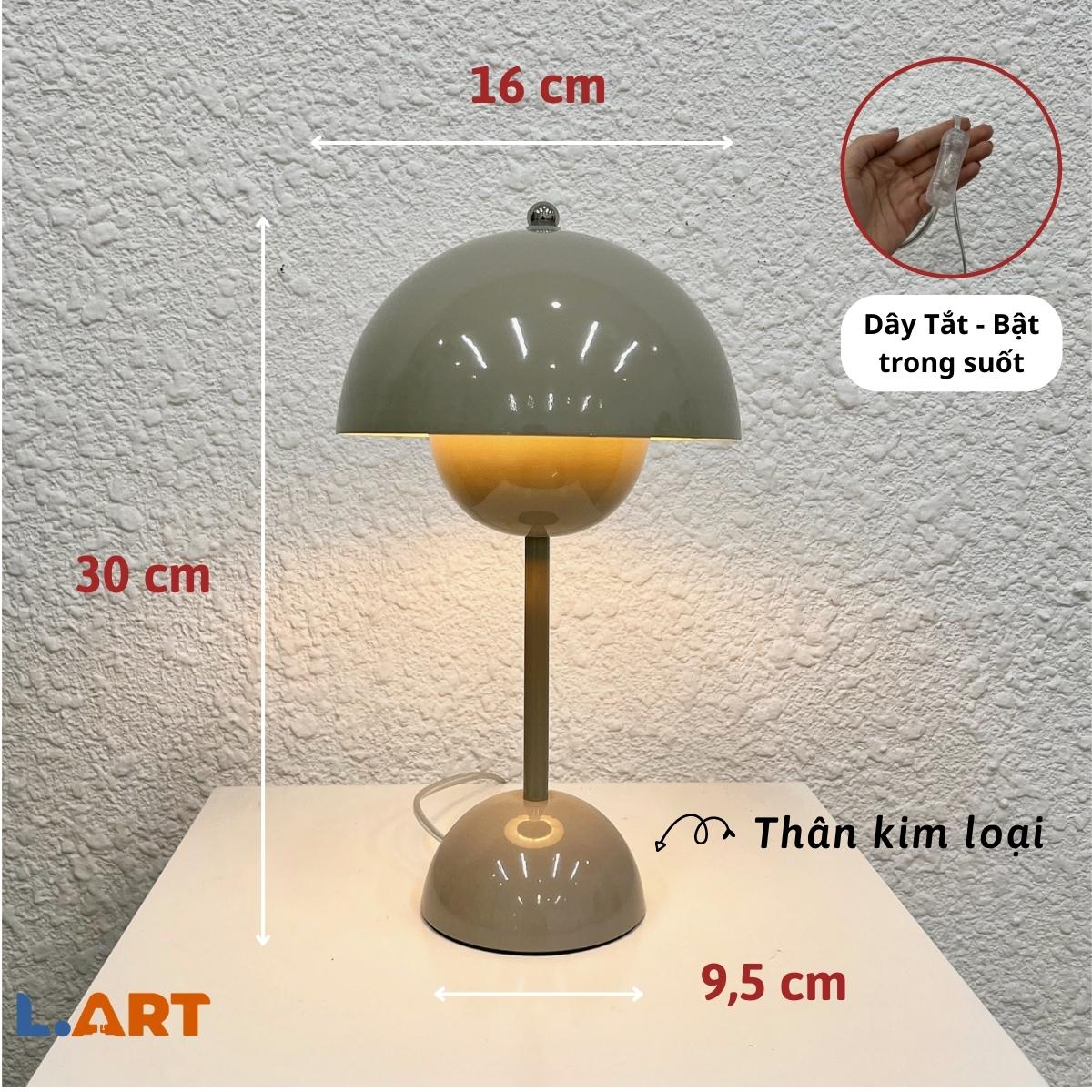 ️ Chất liệu: Chao đèn + Thân đèn bằng kim loại mạ sơn chống rỉ ️ Màu sắc: xám ️ Kích thước:( chiều rọng đế x đường kính chao đèn x chiều cao tổng): 9,5 x 16 x 30 (cm) ️ Thông số bóng: Bóng đèn LED 3-7w đui E27 ️ Loại công tắc: công tắc Tắt - Bật trên dây đèn trong suốt cực đẹp ->> Sản phẩm không có sẵn bóng đèn, L.art tặng kèm 1 bóng đèn LED 3 màu sáng - vàng - trung tính cho khách hàng những trải nghiệm tốt nhất và sản phẩm. Đèn được đóng gói thùng xốp cẩn thận để đảm bảo đèn và chụp đèn bạn nhận được 100% hoàn hảo như hình