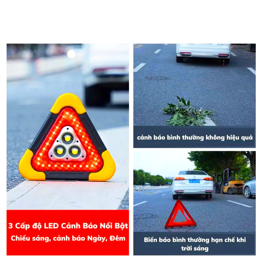 ✨Đèn Cảnh Báo Tam Giác SOS LED COB Pin 6400mAh Sạc Năng Lượng Mặt Trời Cho Xe Đường Dài Tàu Thuyền Biển Báo Công Trình