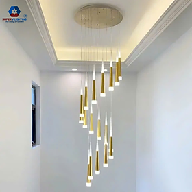 Đèn chùm thông tầng pha lê SuperVilighting trang trí cầu thang đèn thả trần bảo hành 24 tháng