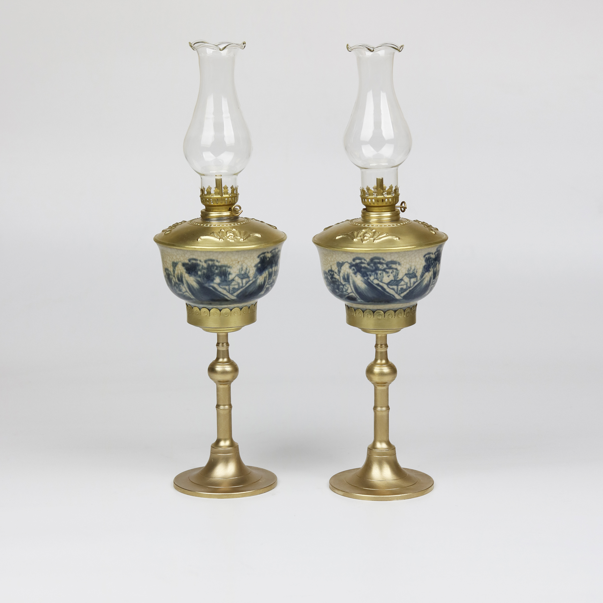 Cặp đèn dầu gốm men rạn bọc đồng cực sang trọng