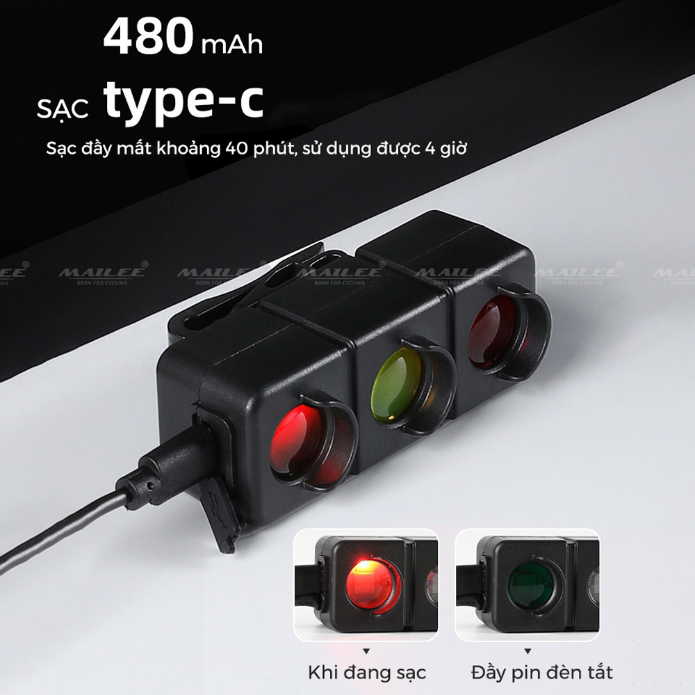 Đèn Đuôi Xe Đạp Ba Màu Giao thông BR-05, Sạc Type-C Pin Bền 480mAh, Cảm biến phanh, Đèn Đạp Xe An Toàn Ban Đêm, Dễ Dùng Cho Người Mới - Mai Lee Đèn Đuôi Xe