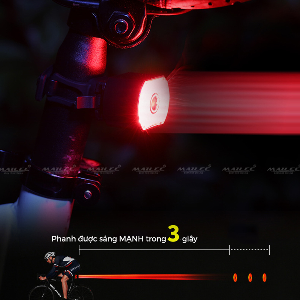 Đèn Đuôi Xe Đạp Thông Minh Cảm Biến Phanh LD-09, 22 bóng LED, tự động tắt khi di chuyển, thời lượng pin lên đến 35h - Mai Lee Đèn đuôi xe đạp thông minh cảm