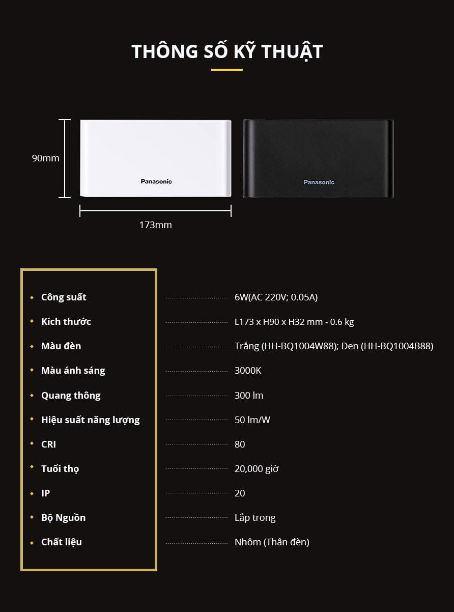 ✨Đèn gắn tường Panasonic HHBQ1004B88, Ánh sáng vàng 3000K, trang trí, thắp sáng lối đi cầu thang, hành lang