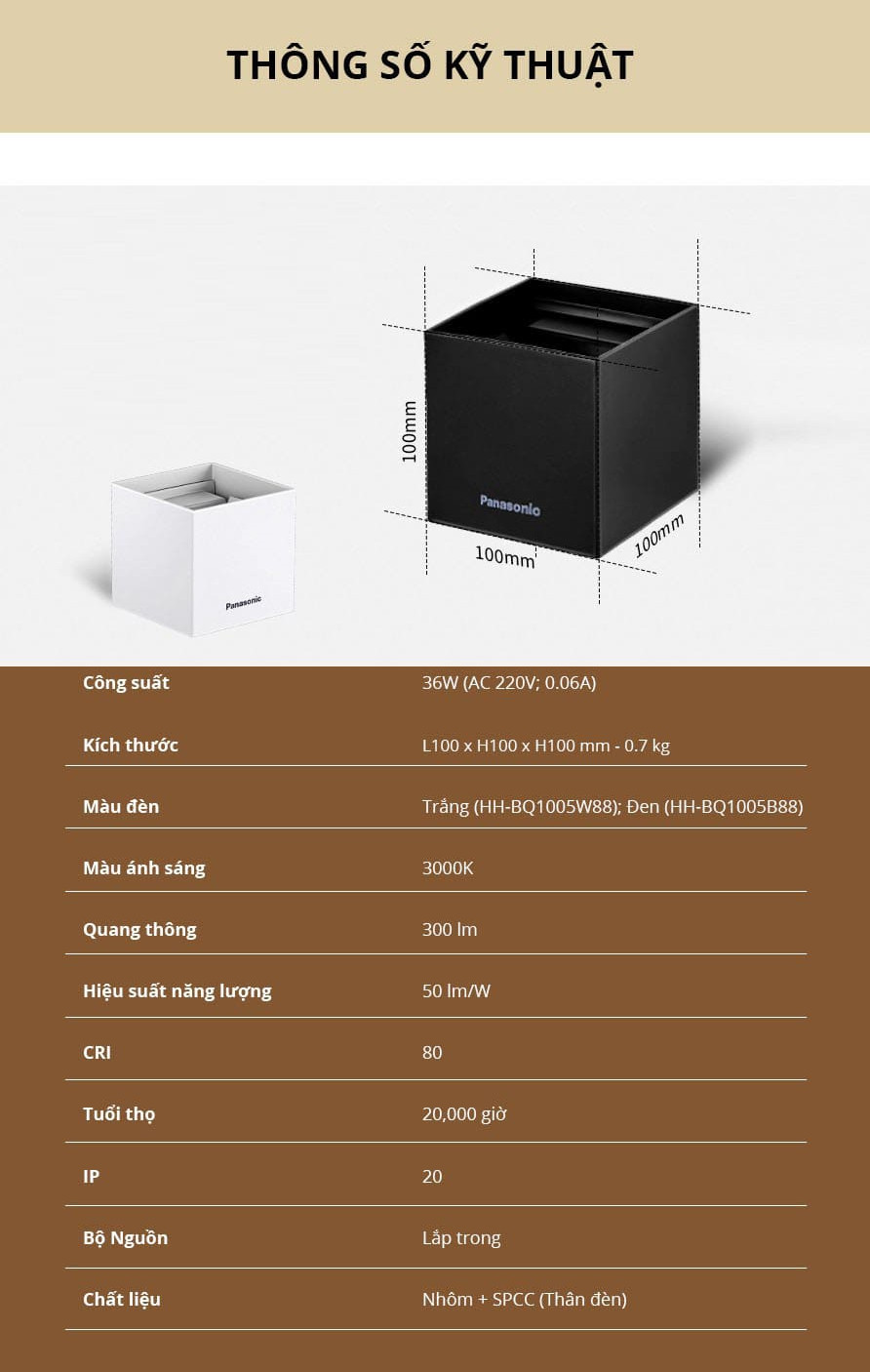 * THÔNG SỐ KỸ THUẬT - Mã SP : LWA5011 - Công Suất : 5W - Nguồn Điện : 220V/50Hz - Ánh Sáng : Vàng - Nhiệt Độ Màu : 3000K - Kích Thước : 10*10*10 cm - Chip LED : EPISTAR - Độ Hoàn Màu : CRI> 80 - Chất