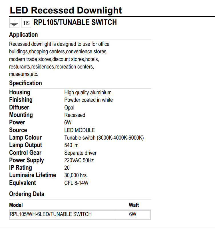THÔNG TIN SẢN PHẨM - Thương Hiệu: Tholux - Tiêu chuẩn sản phẩm Châu Âu Đèn LED trần K50-9 THOLux hoạt động ở điện áp tiêu chuẩn 220V, phù hợp với hệ thống điện lưới