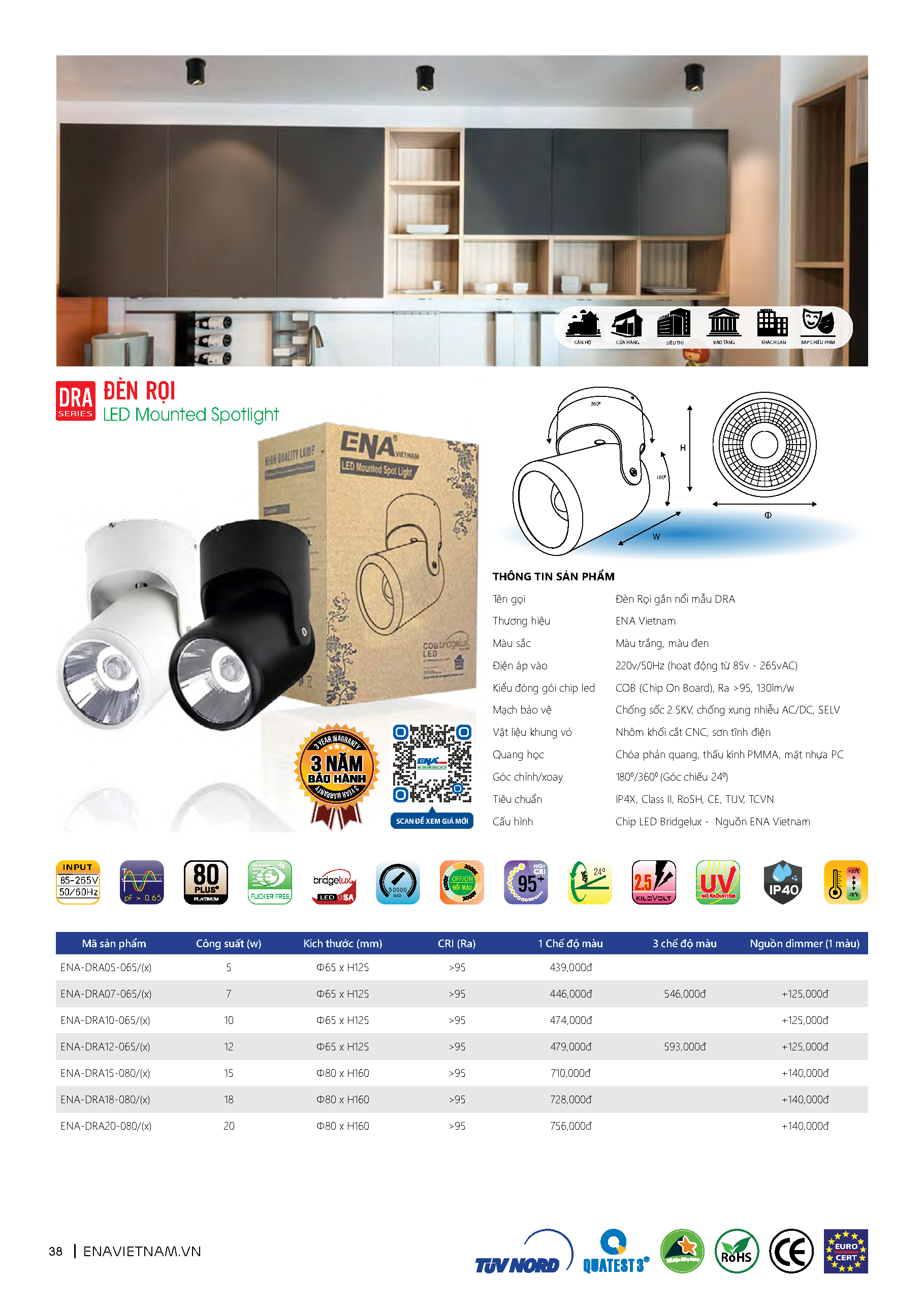 Mua tại TiktokĐèn rọi ngồi chiếu điểm ENA Vietnam bảo hành 3 năm Công suất: 5W, 7W, 10W, 12W +Kích thước: Ø65xH125mm Công suất:15W, 18W, 20W +Kích thước: Ø80xH160mm Ánh sáng: Trắng/ Trung tính/ Vàng/ 3 CHẾ ĐỘ (7W, 12W) ==> Tắt, bật công tắc đèn sẽ tự động chuyển màu theo thứ tự (Vàng/ Trắng/ Trung tính).