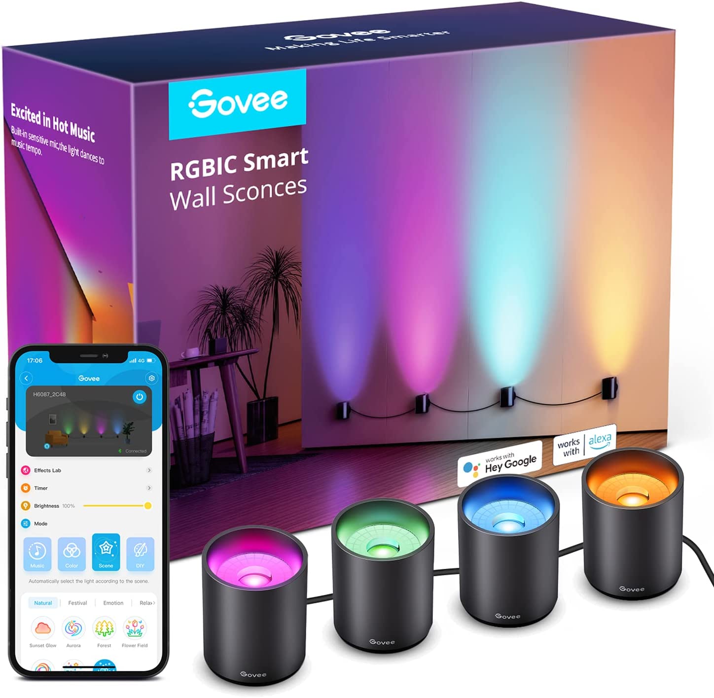 Mô tả Govee RGBWW Smart Fixture Lights – Gói 4 cái