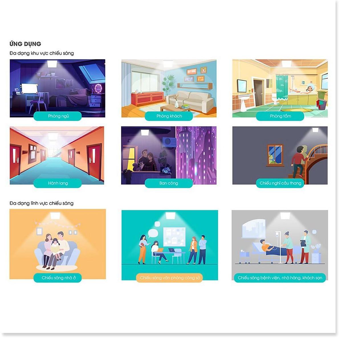 Đèn Led ốp trần thiết kế nhằm thay thế đèn ốp trần huỳnh quang với khả năng tiết kiệm điện, độ tạo màu và độ bền cao, không phát ra các tia tử ngoại hay