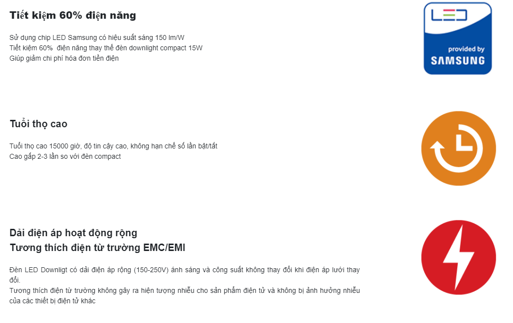 - Dải điện áp rộng 120-250V đáp ứng dải điện áp lưới tại Việt Nam